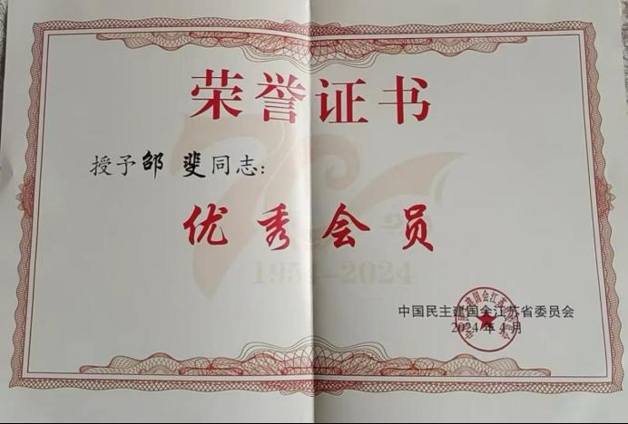 她多次被評為單位先進個人、泉山區優秀政協委員,2024年還被民建江蘇省委會授予“優秀會員”稱號。