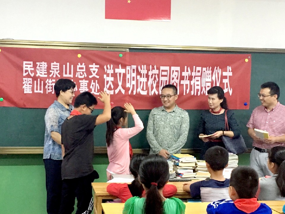 2016年9月27日下午,由民建徐州市泉山總支和徐州市泉山區(qū)政府翟山街道辦事處共同主持的“送文明進(jìn)校園”圖書捐贈(zèng)儀式在徐州市泉山區(qū)翟山小學(xué)舉行。此次活動(dòng)是為了響應(yīng)中共徐州市委、市政府進(jìn)一步深化文明城市創(chuàng)建,全面提升市民文明素質(zhì)和城市文明程度的號(hào)召而開展的。