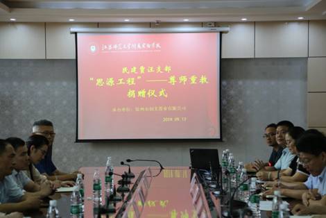 9月12日,為慶祝第35個教師節(jié),進(jìn)一步推進(jìn)“不忘合作初心,繼續(xù)攜手前進(jìn)”主題教育活動的深入開展,不斷豐富徐州民建“思源工程”品牌活動的內(nèi)涵,徐州民建賈汪支部組織舉辦了“思源工程”--“尊師重教”捐贈活動。民建徐州市委會專職副主委王奉君、賈汪區(qū)委常委、統(tǒng)戰(zhàn)部部長苗國慶、賈汪區(qū)委統(tǒng)戰(zhàn)部副部長俞守軍、賈汪區(qū)法院副院長、民建賈汪支部主委周永光、江蘇師范大學(xué)附屬實(shí)驗(yàn)學(xué)校黨總支書記、校長朱景坤等20余人參加了活動。