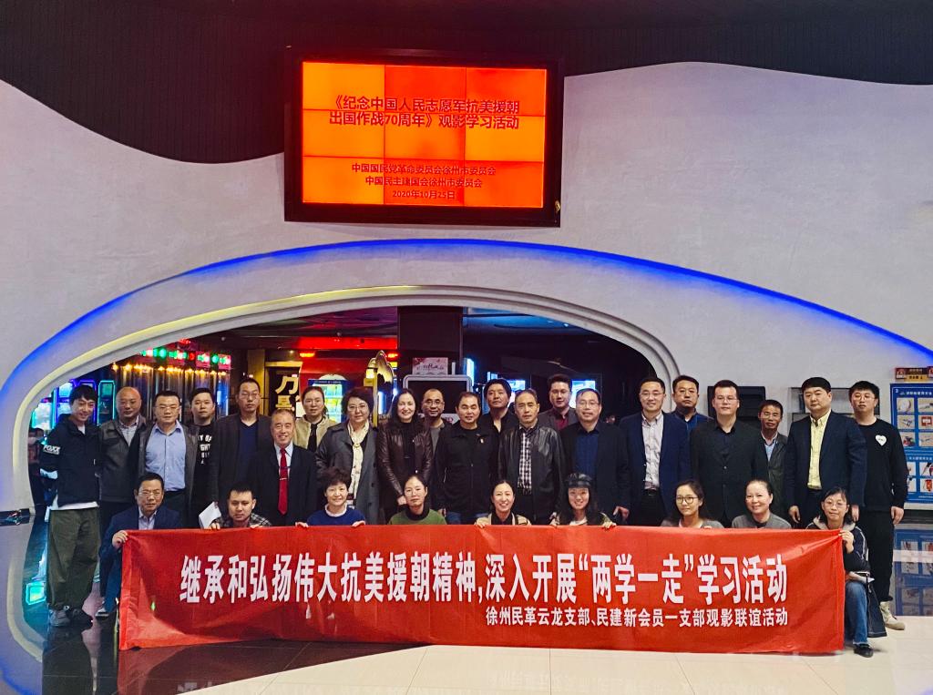 10月25日是抗美援朝紀念日。為了繼承和弘揚偉大抗美援朝精神,加強民主黨派成員的愛國主義教育,深入開展“兩學一走”主題學習活動。當天下午,民建徐州市委機關總支新會員一支部,在支部主委徐磊的帶領下,與民革云龍區支部通過聯合觀看抗美援朝題材電影《金剛川》,開展紀念中國人民志愿軍抗美援朝出國作戰70周年活動。民建徐州市委會專職副主委王奉君,民革徐州市委會副主委何凱,中共徐州市委統戰部黨派處處長楊承華,民革云龍區支部主委、云龍區科技局局長劉文君,云龍區新階層聯誼會副會長姜坤以及部分入會積極分子等應邀參加。